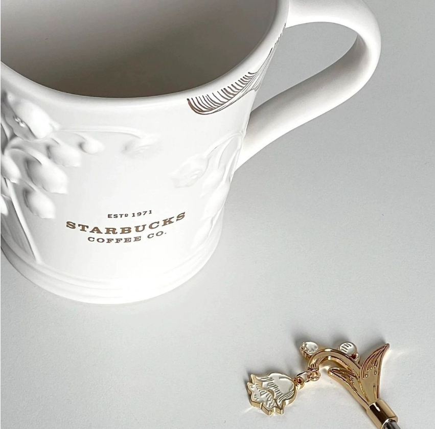 2023 Starbucks Mug Elegant Lily of the Valley Colorful Relief Glass Cup W/ Stick
