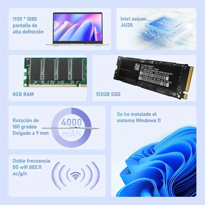 Auusda Laptop With 8GB LPDDR4 512GB SSD, Intel Celeron J4125 Up To 2.5 GHz, 14.1 1920x1080 IPS, Webcam, Mini HD, USB-A X 2, Micro SD Card Slot, Windows 11 Pro, Expandable Storage details 2Auusda Laptop With 8GB LPDDR4 512GB SSD, Intel Celeron J4125 Up To 2.5 GHz, 14.1 1920x1080 IPS, Webcam, Mini HD, USB-A X 2, Micro SD Card Slot, Windows 11 Pro, Expandable Storage details 2