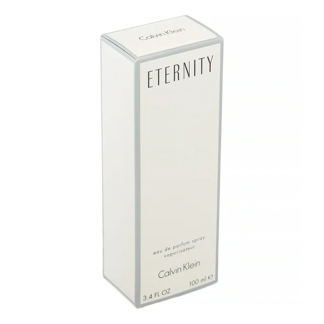 ETERNITY perfume was introduced by CALVIN KLEIN in 1988. This romantic floral fragrance contains freesia, mandarin, sage, muguet, white lily, patchouli, and sandalwood. Eternity body lotion worn with the perfume creates a romantic and luxurious fragrance all over. Eternity perfume is packaged in a clear glass bottle with a silver cap and is enclosed in a classic clean white box. Other fragrances from Calvin Klein include Eternity Moment and CK One.