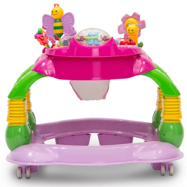 The only entertainer you’ll ever need, the Lil’ Play Station 3-in-1 Activity Walker from Delta Children features engaging sounds, lights and toys that help stimulate early mental development while building strong legs and balance skills. Baby can activate the walker’s music and lights with buttons on the front toy tray. Easily convertible, it transforms from a rocker to a stationary activity center, to a bouncer, and then finally, to a walker—the adjustable height allows it to grow with your baby as they graduate from crawling to walking. The cozy, padded seat rotates 360-degrees, so your child can comfortably interact with all the attached toys. Toys include a flower mirror to engage you child’s developing vision and curiosity, crinkle petals that entertain and soothe, and a spinning ball and bead bar that encourages hand and eye coordination. The Lil’ Play Station 3-in-1 Activity Walker from Delta Children is great for gift-giving and baby registry!