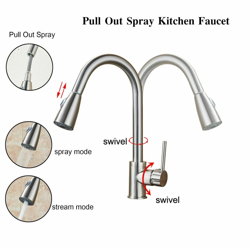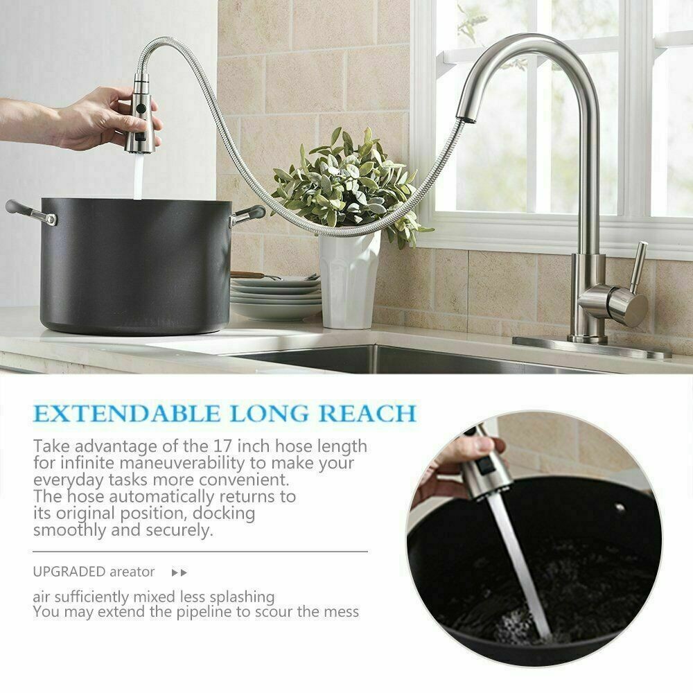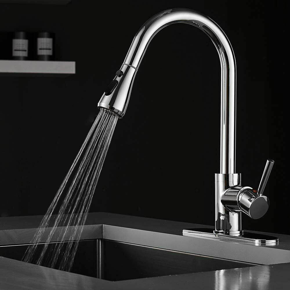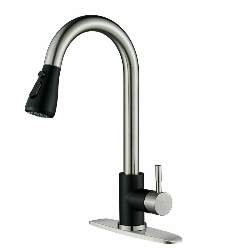 Kitchen Sink Faucet Pull Down Single Handle Swivel Sprayer Mixer Tap W/Plate