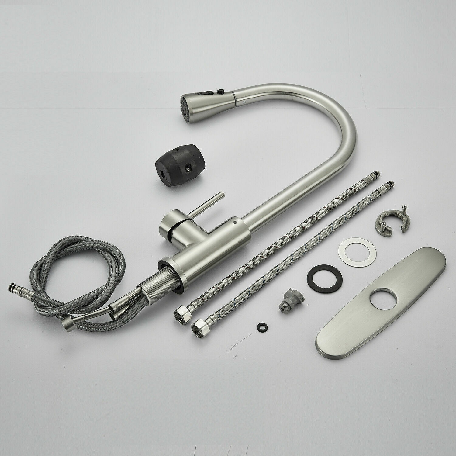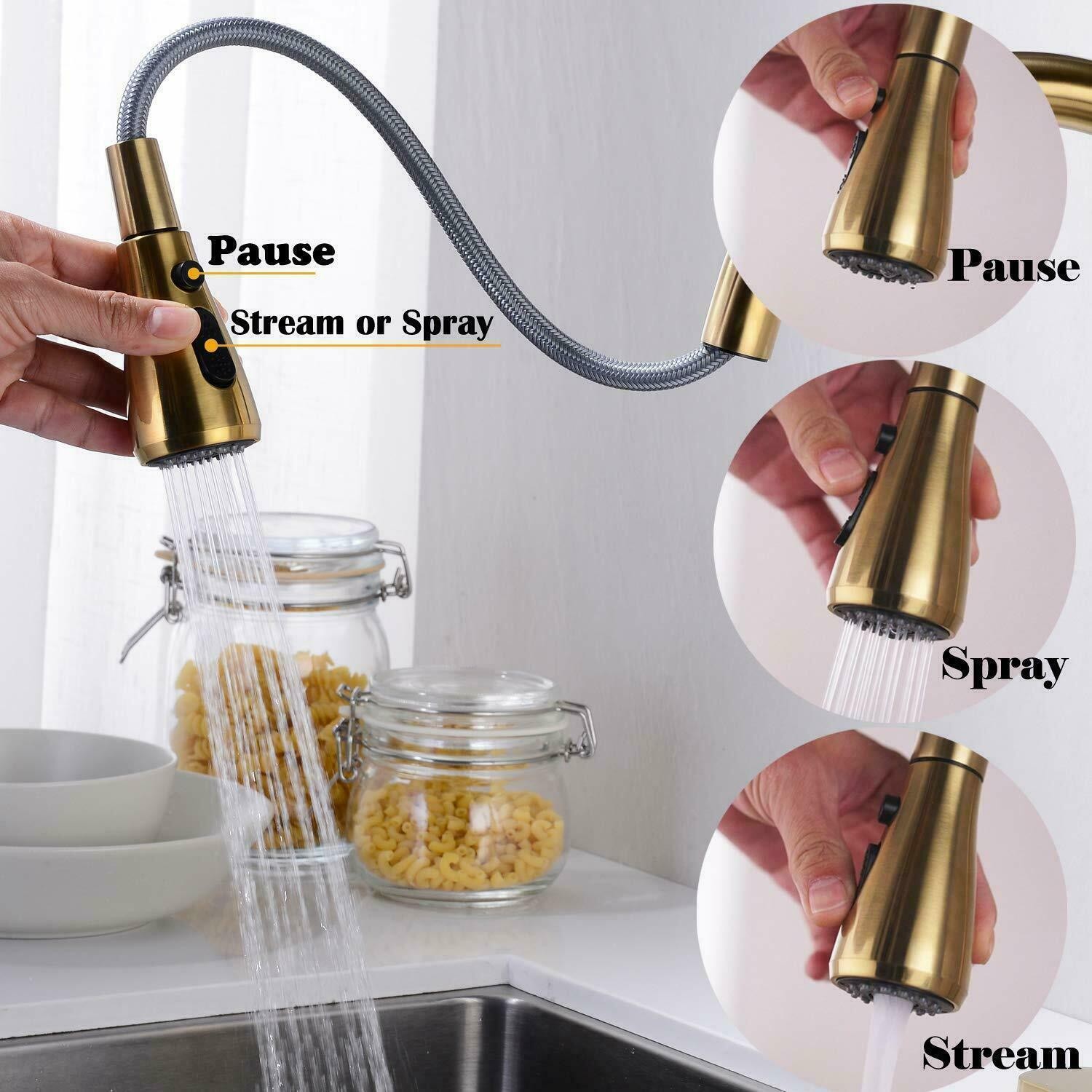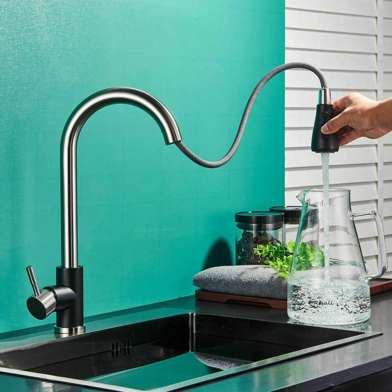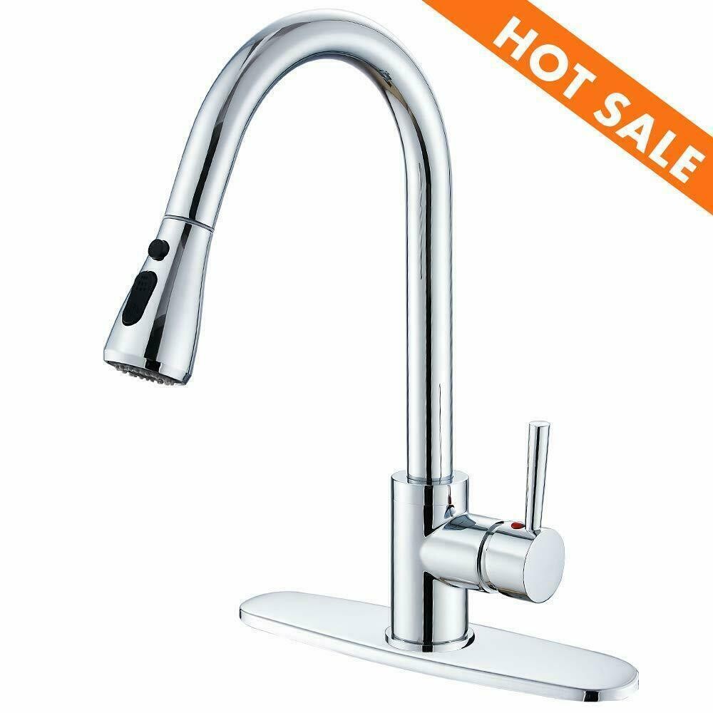 Kitchen Sink Faucet Pull Down Single Handle Swivel Sprayer Mixer Tap W/Plate