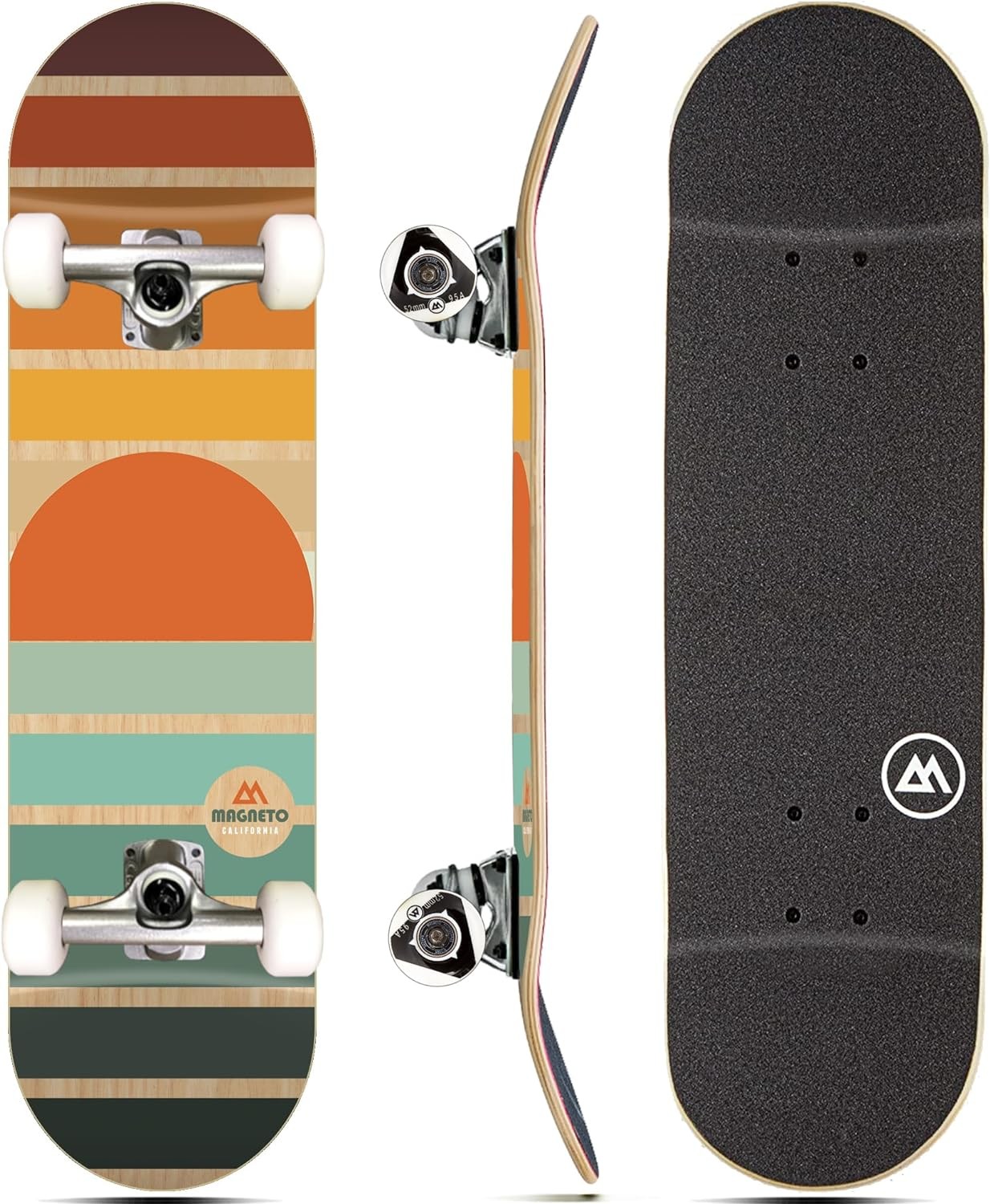 Magneto Complete Skateboard | Maple Wood | ABEC 5 Bearings | Double Kick Concave Deck | Kids Skateboard Cruiser Skateboard | Skateboards for Beginners, Teens & Adults (Free Stickers Included)