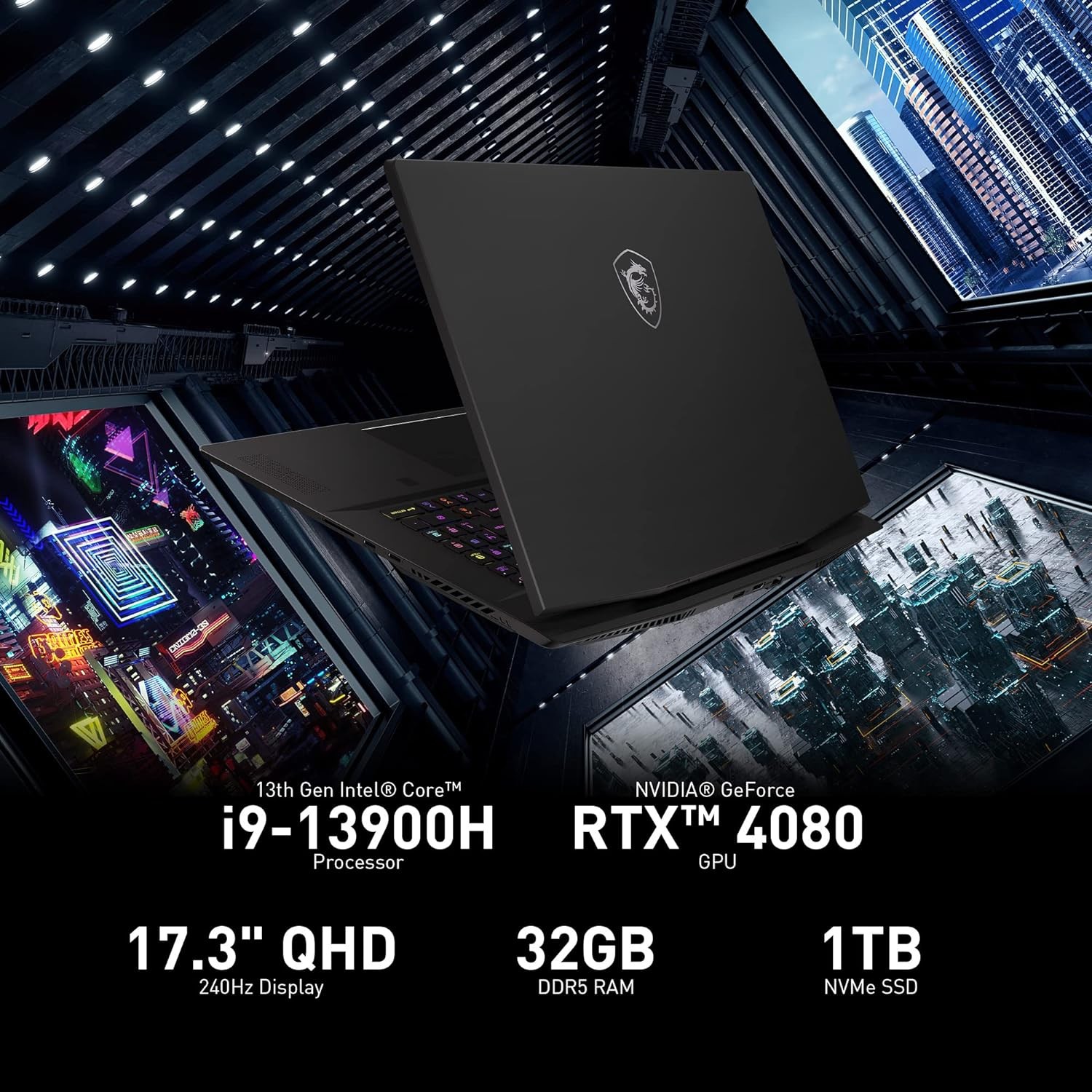 MSI Stealth 17 Studio 17.3" QHD 240Hz Gaming Laptop: 13th Gen Intel Core i9, RTX 4080, 32GB DDR5, 1TB NVMe SSD, Thunderbolt 4, USB-Type C, Cooler Boost...