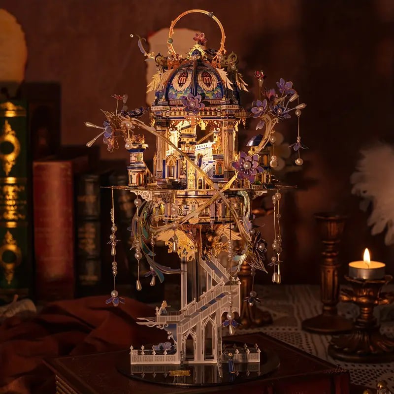 Package Included: 7 x Romeo and Juliet DIY Puzzle 3D Metal Model Kits Puzzle Sheets 1 x Instruction Manual 1x Acrylic base holder 1x rechargeable light sets 1x music box with BGM: I will always love you More details of product